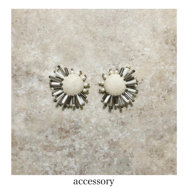 ビーズ刺繍の耳飾り。 オーガニックコットン丸型パーツのまわりをパールと竹ビーズで装飾。 パールはくすみ系生成り、竹ビーズは乳白、白銀、消炭色の3種類を使用しました。 裏面革仕様。 ※フランス製ビーズやスパンコールにおけるサイズの不均一・サビ・色ムラ等ございます。 ※一部特定ブランドのスパンコールを使用している為、再販ができなくなる場合がございます。 〔detail〕 サイズ:約 3cm×3cm 2g 金具仕様:金属(丸皿ピアス・ネジバネイヤリング) 納期:お支払い完了日より10日以内に発送 配送:レターパックプラス 〔attention〕 ご購入の際はshopping guide及び下記内容全てにご了承頂いた形とさせて頂きます。 必ずご確認くださいませ。 •手作り商品の為個体差が生じます。 •商品は繊細な素材を使っています。取り扱いには十分ご注意ください。 ※落下等の衝撃や圧力に弱く、鞄などにそのまま入れてしまいますと破損する商品もございます。 •光の加減やご覧の端末環境により実物と色味などが異なる場合がございます。 •サイズの大きいアクセサリーはビーズ等である程度の重みがあることをご了承ください。 •凸凹、不揃い、ムラなど、素材本来の性質に加え、手作りの歪さをご容赦頂ける場合のみご購入をお願い致します。 •全国一律送料にて、下記配送方法を考えております。 レターパックプラス:記録、再配達有り。日時指定不可。梱包したものを特定封筒に入れて発送。