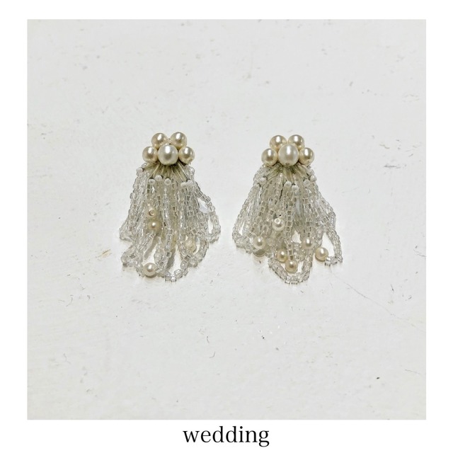 淡水パール・アンティークスパンコールとフリンジのイヤードレス。 フリンジ部分はシルバーの竹ビーズと生成り粒ビーズを並べ製作しました。 フリンジ先には珊瑚、トップは淡水パールを使用しています。 ※珊瑚・淡水パールは色と形に個体差があります。 ※写真ではフリンジ部分の竹ビーズが2色に分かれて見えますが、光の反射で下側が白めに写っています。実際は上側(シルバー)1色です。 〔detail〕 サイズ:幅約1.5cm×縦約6cm 金具仕様:金属(丸皿ピアス・ネジバネイヤリング) 納期:お支払い完了日より14日以内に発送 配送:定形外+書留(日時指定不可) または ゆうパック(日時指定は購入日より14日後のお日にちでお願い致します) ●hoshinooraについて● こちらはドレスブランドのHOSHI DRESS AND WEDDING × nooraコラボ商品として製作させて頂いた定番アクセサリー(hoshinoora)です。 hoshinooraでは主にHOSHIデザイナーとnooraが直接フランスへ買い付けに行ったビーズ(1940-1960年代)等を使用しており、HOSHIドレスに合わせた雰囲気で製作しているのが特徴です。 アンティーク素材が多い為、お写真はあくまで見本品(イメージ)となり、仕上がりには1点1点違いが出ます。また、独特のサビ・くすみ・色等、個体差もございますのでご理解くださいますようお願いします。 〔attention〕 ご購入の際はshopping guide及び下記内容全てにご了承頂いた形とさせて頂きます。 必ずご確認くださいませ。 •手作り商品の為個体差が生じます。 •商品は繊細な素材を使っています。取り扱いには十分ご注意ください。 ※落下等の衝撃や圧力に弱く、鞄などにそのまま入れてしまいますと破損する商品もございます。 •光の加減やご覧の端末環境により実物と色味などが異なる場合がございます。 •サイズの大きいアクセサリーはビーズ等である程度の重みがあることをご了承ください。 •凸凹、不揃い、ムラなど、素材本来の性質に加え、手作りの歪さをご容赦頂ける場合のみご購入をお願い致します。 •発送につきまして、下記ご確認ください。 定形外+書留:全国一律送料。記録、再配達有り。日時指定不可。規格内サイズにて梱包発送。 ゆうパック:地域別送料。追跡・再配達・補償有り。日時指定可。(購入時に規定納期以降にて日時をお知らせください。指定可能時間:午前中・12-14・14-16・16-18・18-20・19-21・20-21) ※送料には包装等の料金が含まれる場合がございます。ご了承ください。