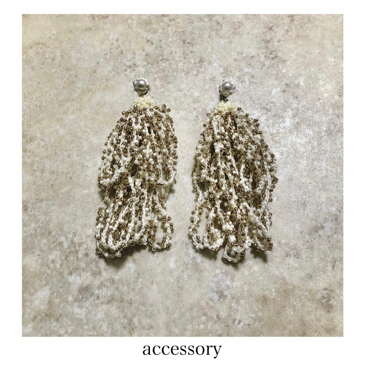 ※手編みフリンジと粒ビーズのボリューム感に多少の個体差がございます。