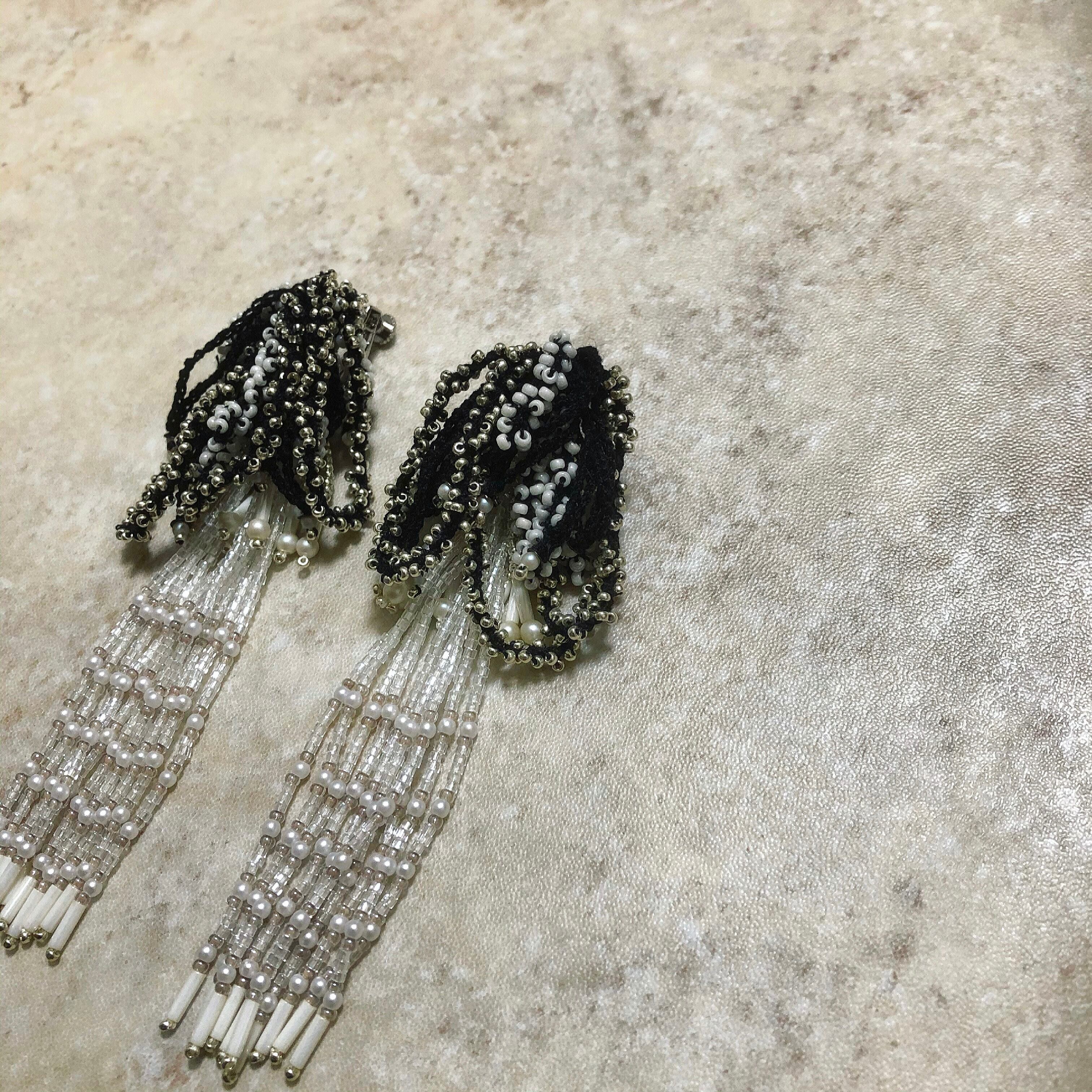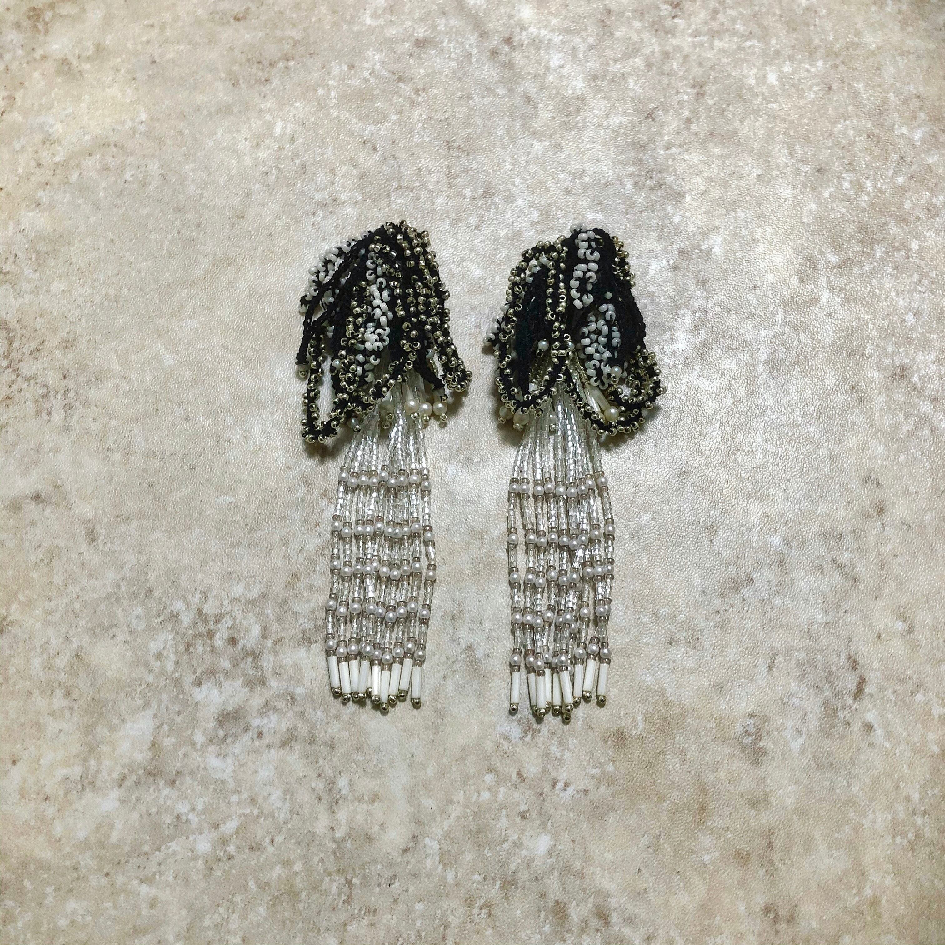 ※手編みフリンジと粒ビーズのボリューム感に多少の個体差がございます。
