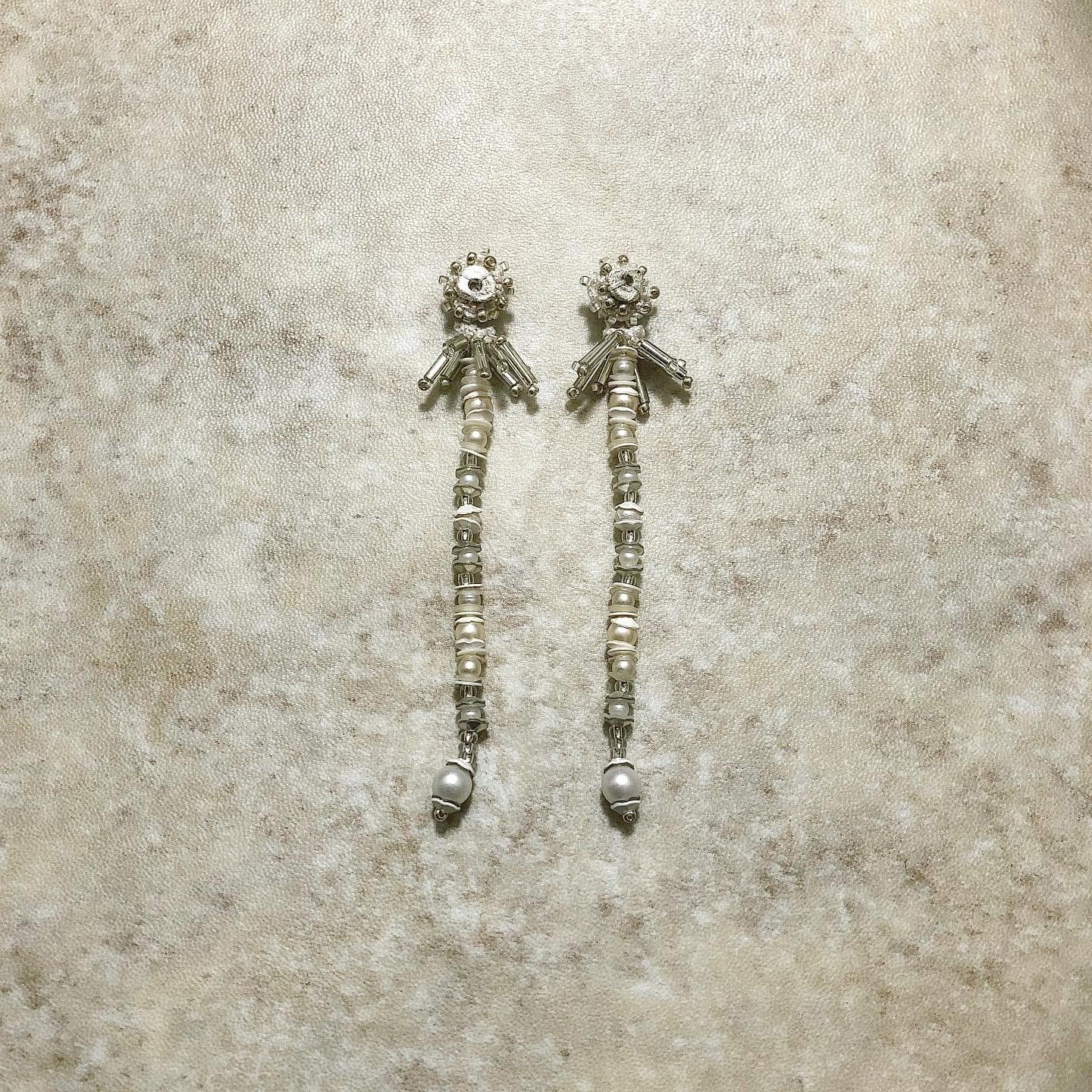 手編みパーツに合金ビーズと粒ビーズを飾り、トップから1本の揺れるフリンジデザインに製作しました。