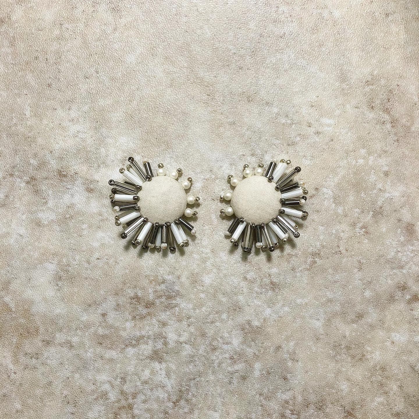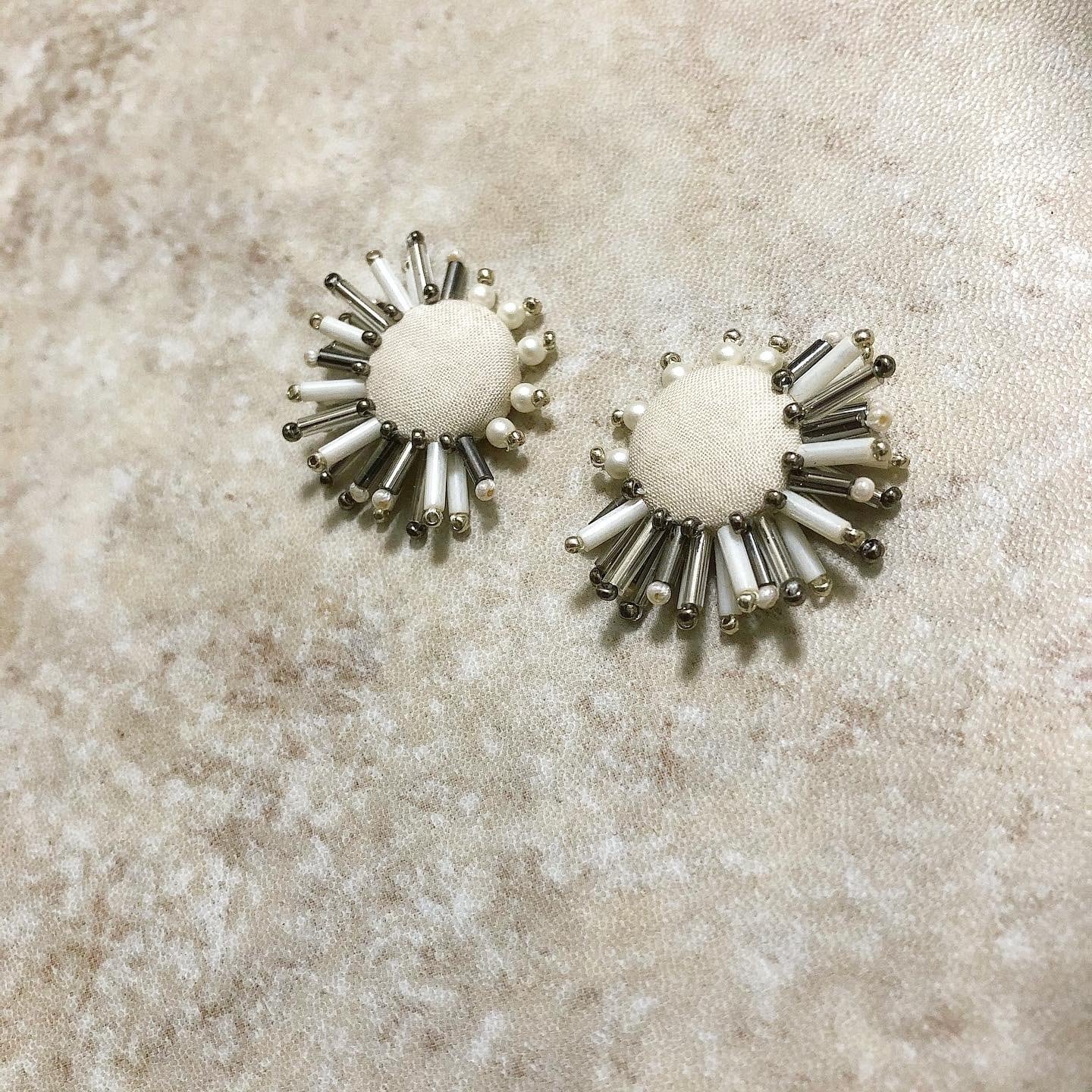 パールはくすみ系生成り、竹ビーズは乳白、白銀、消炭色の3種類を使用しました。