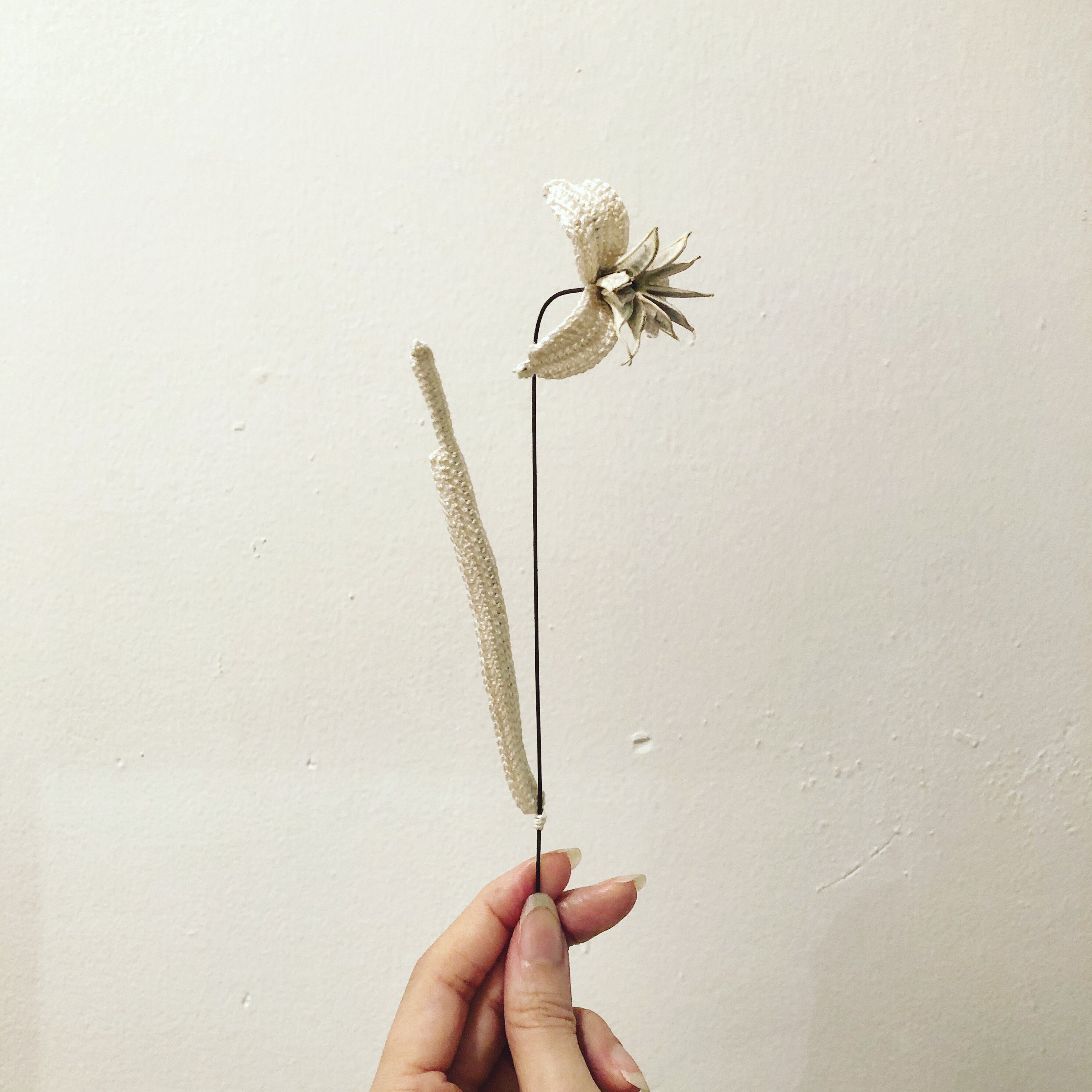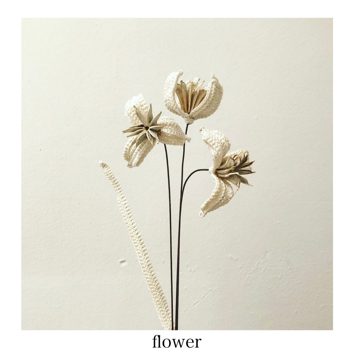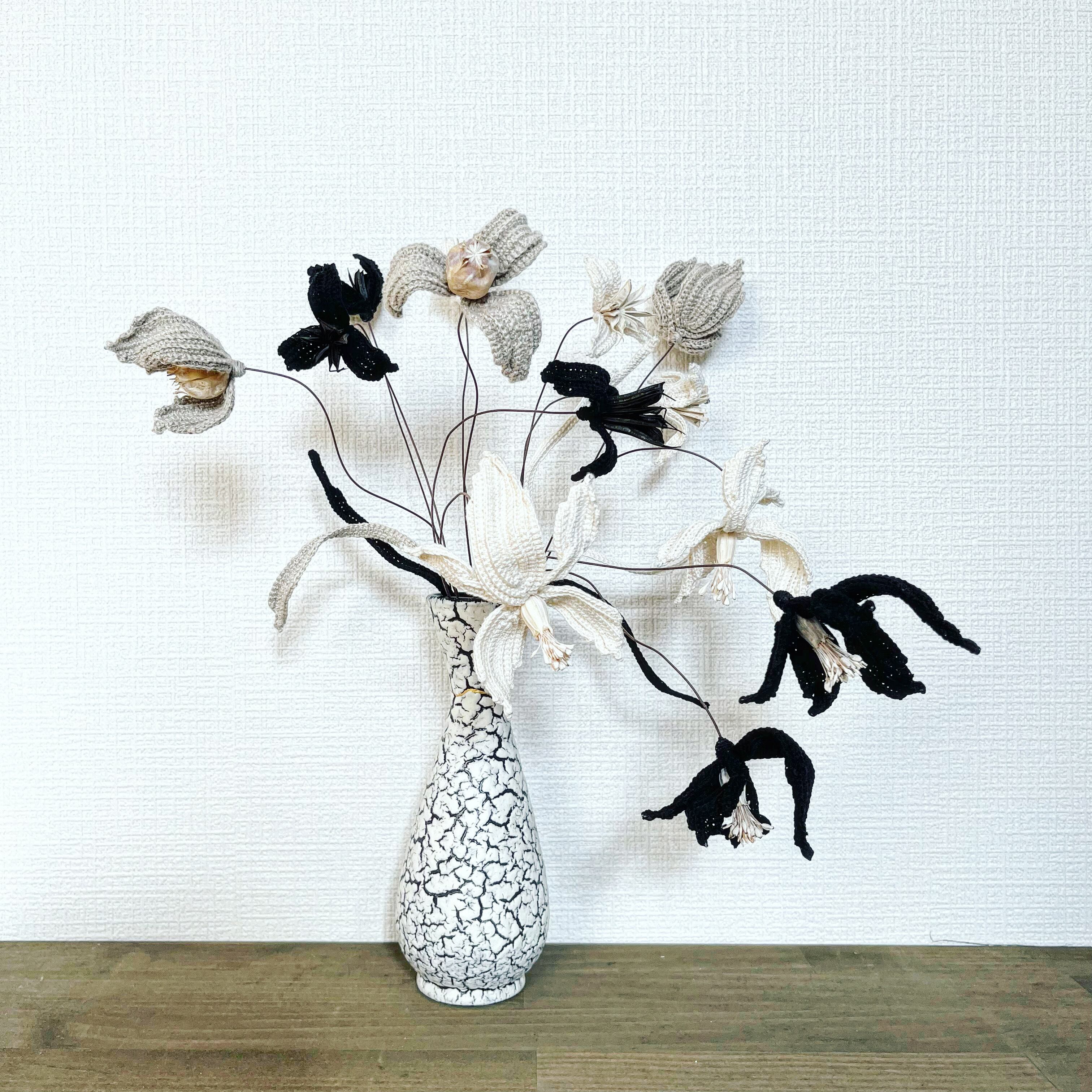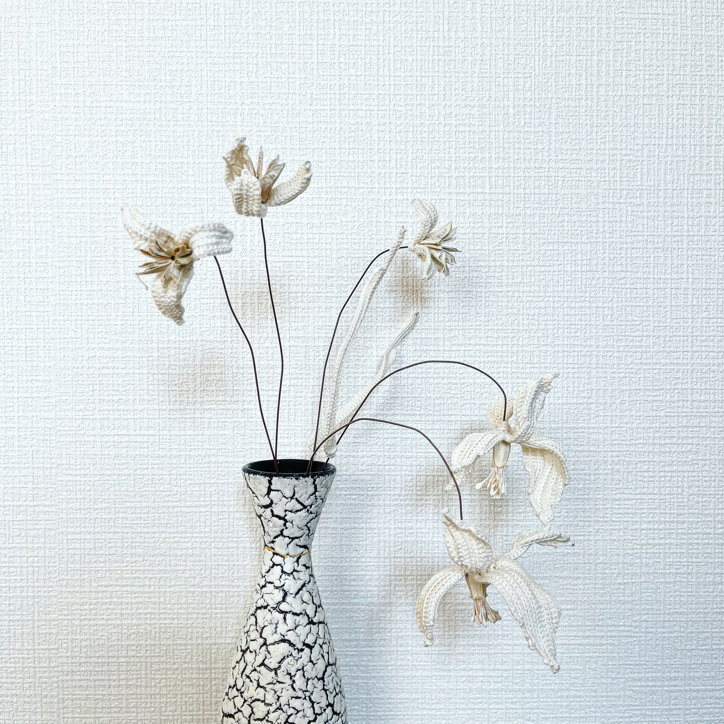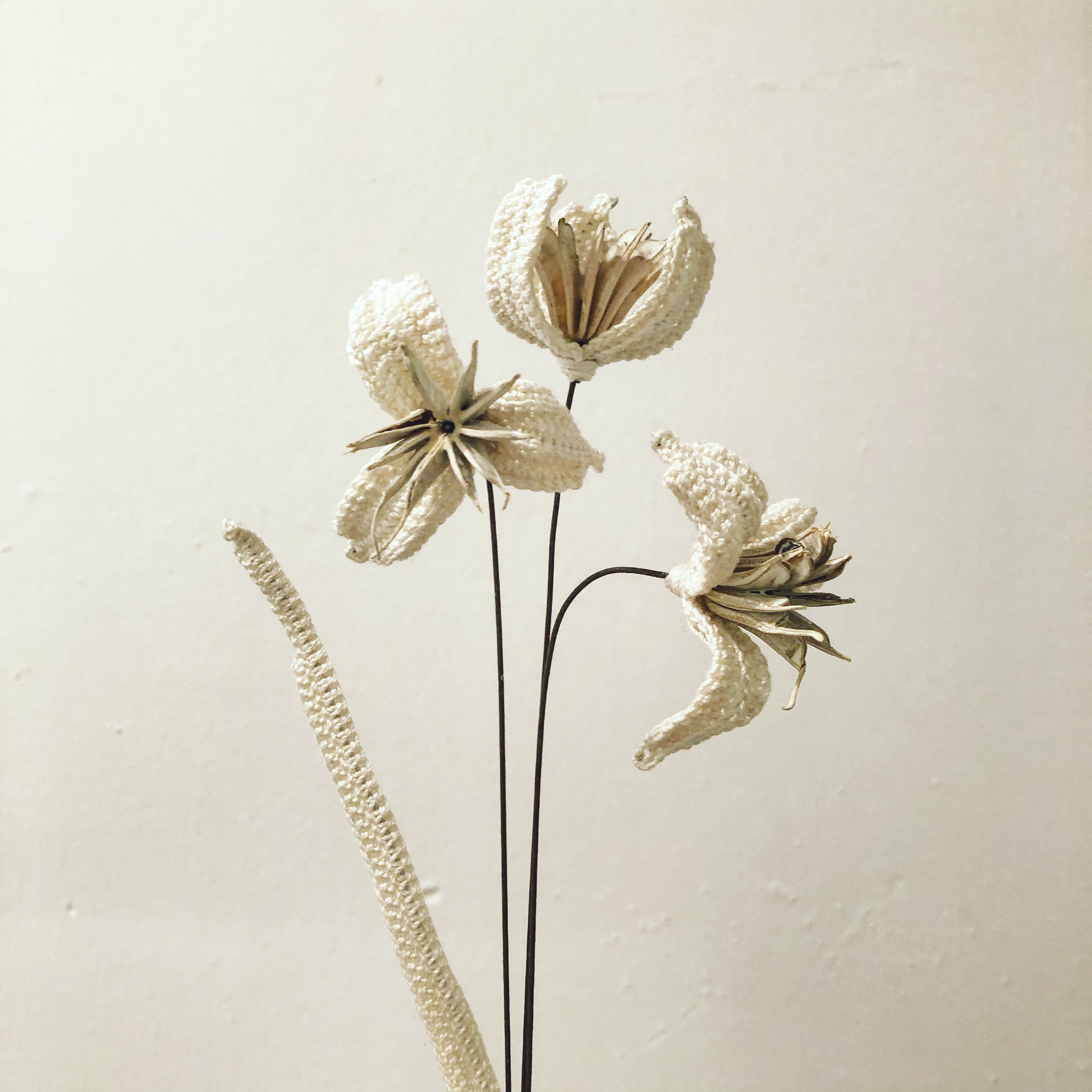 手編みとドライフラワーの観用植物。ナチュラルカラー。