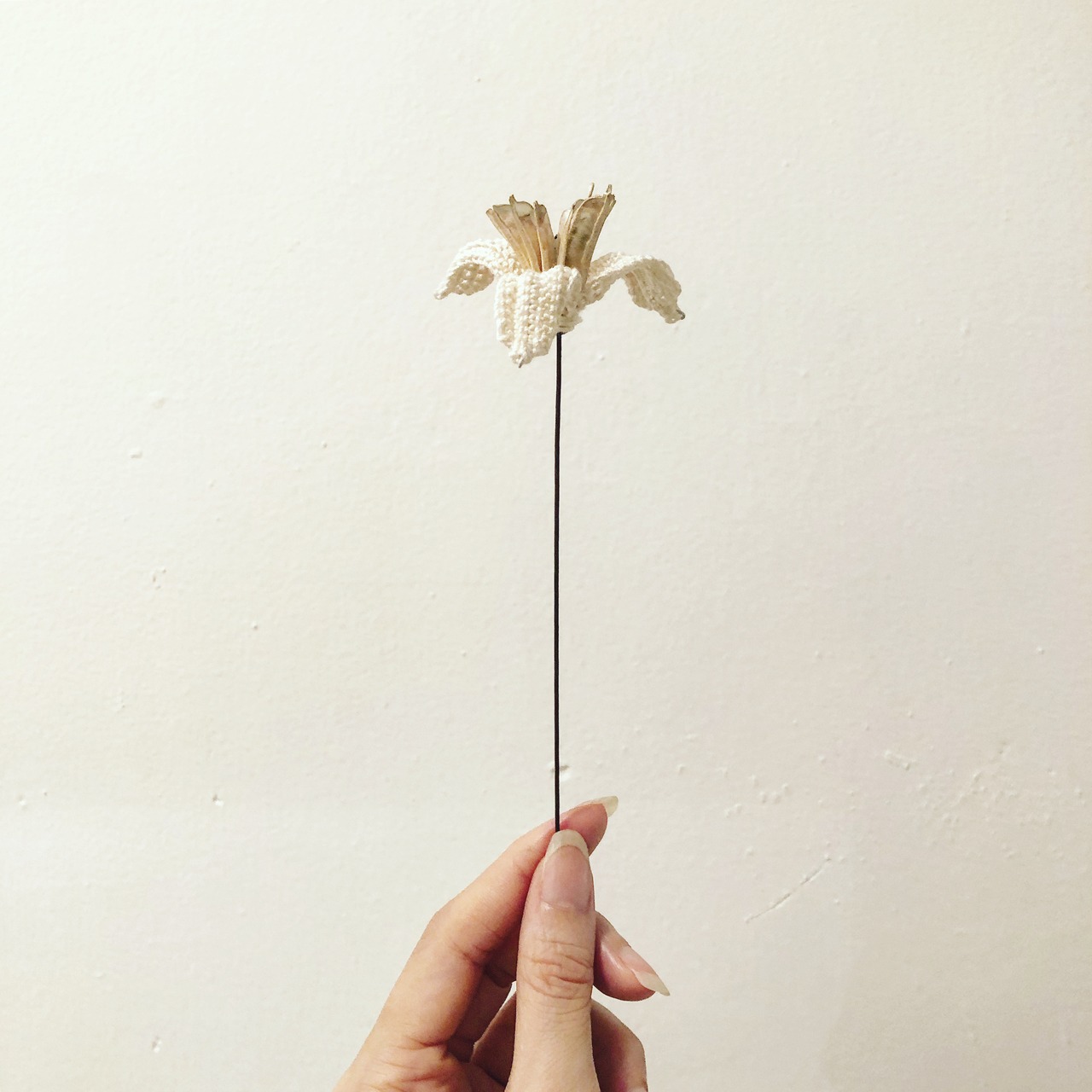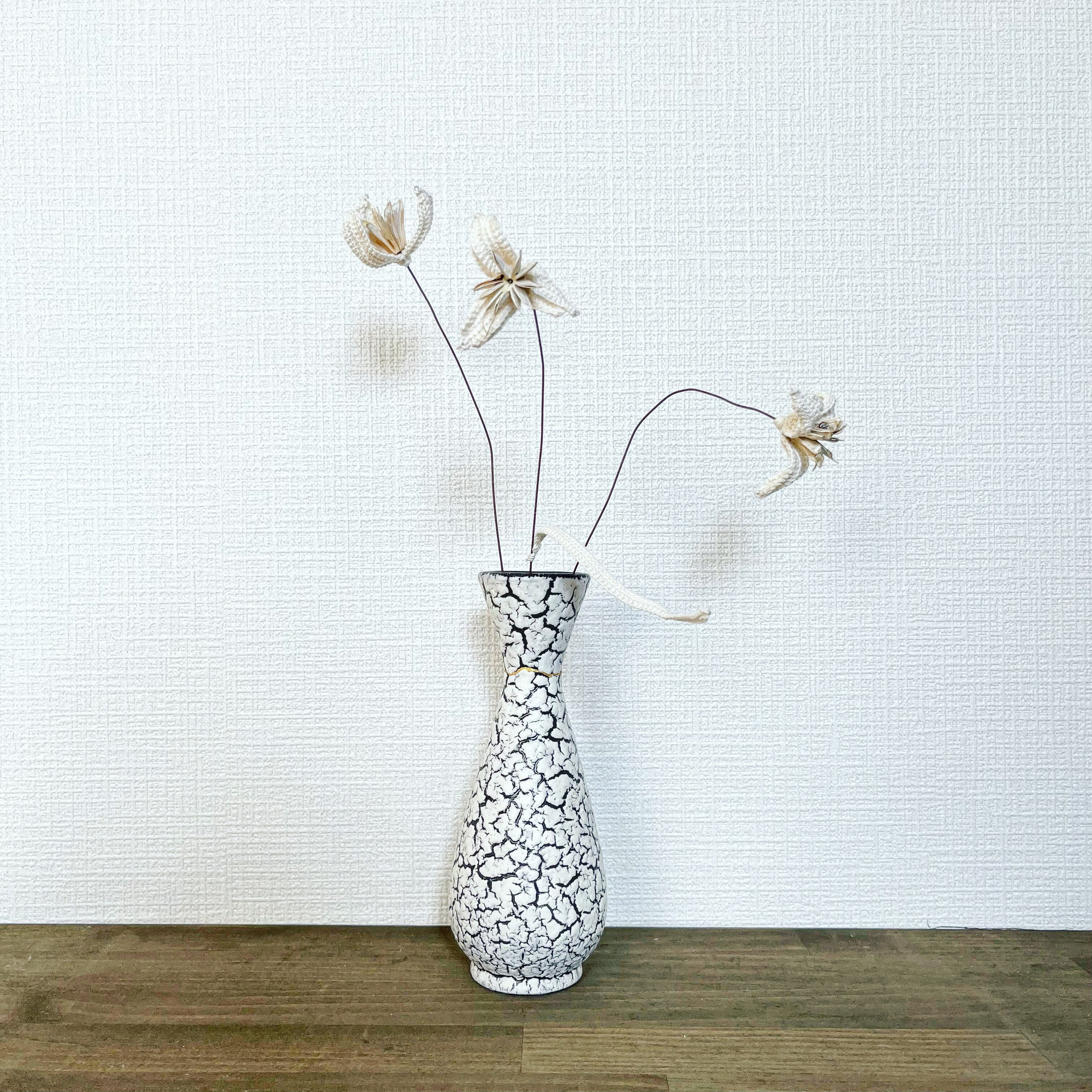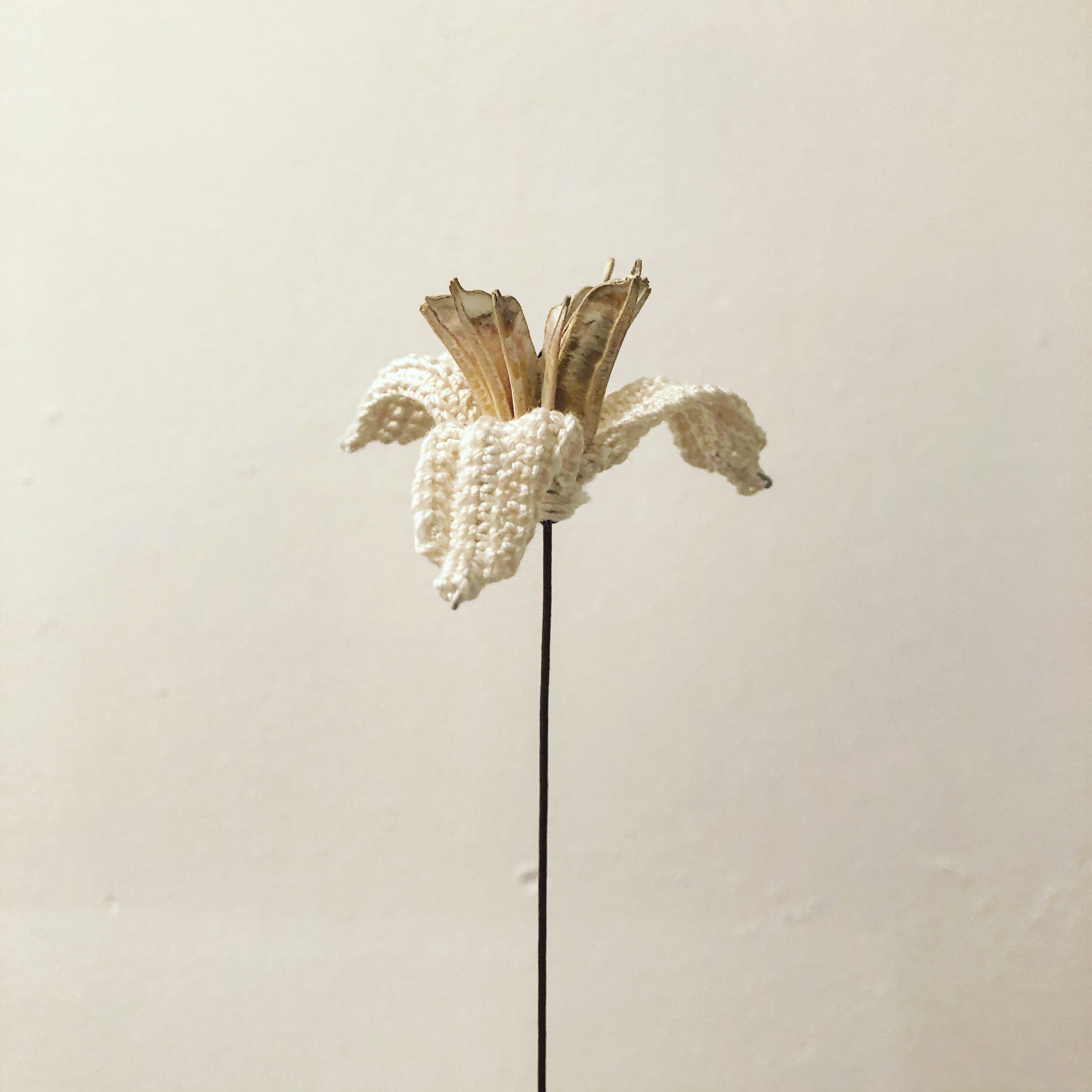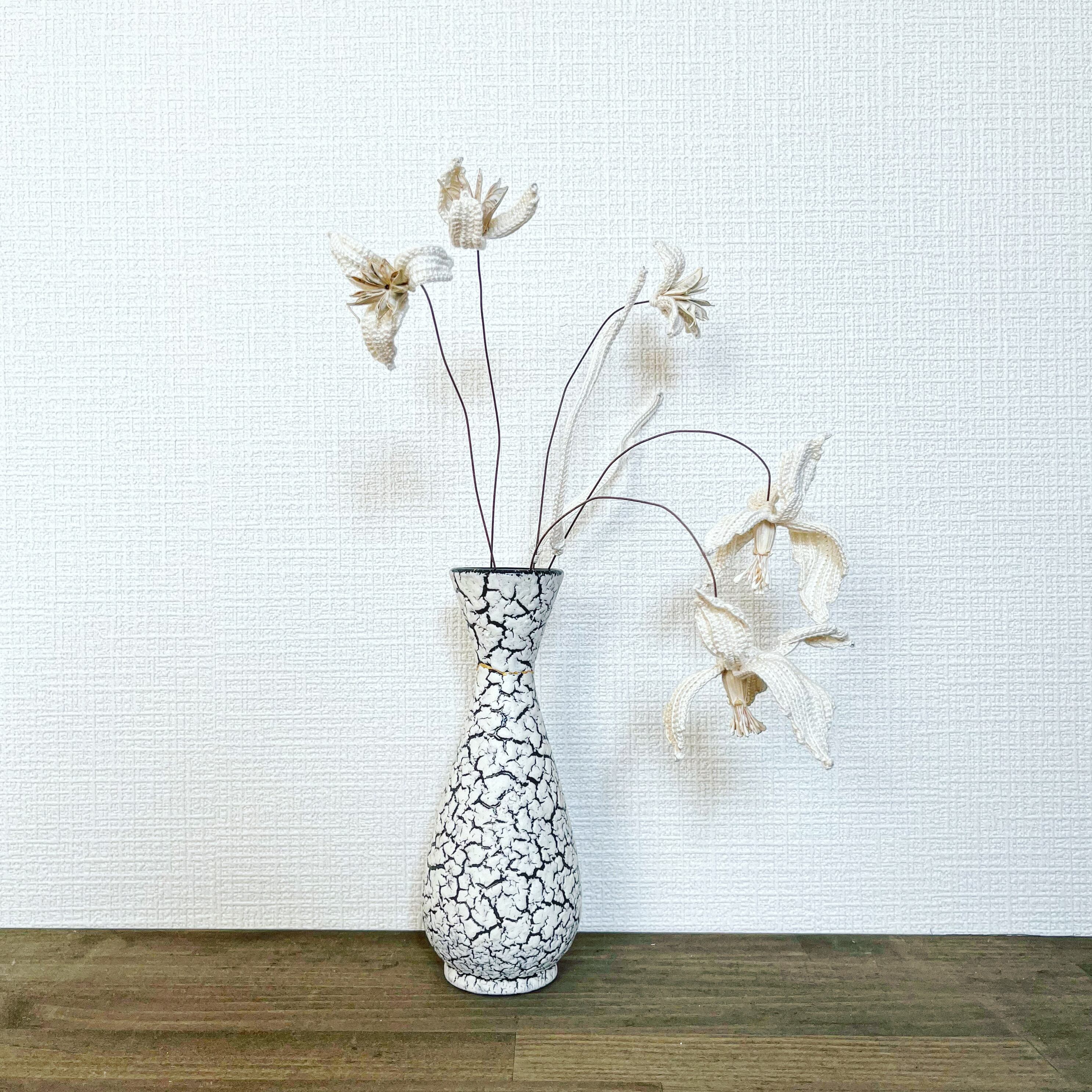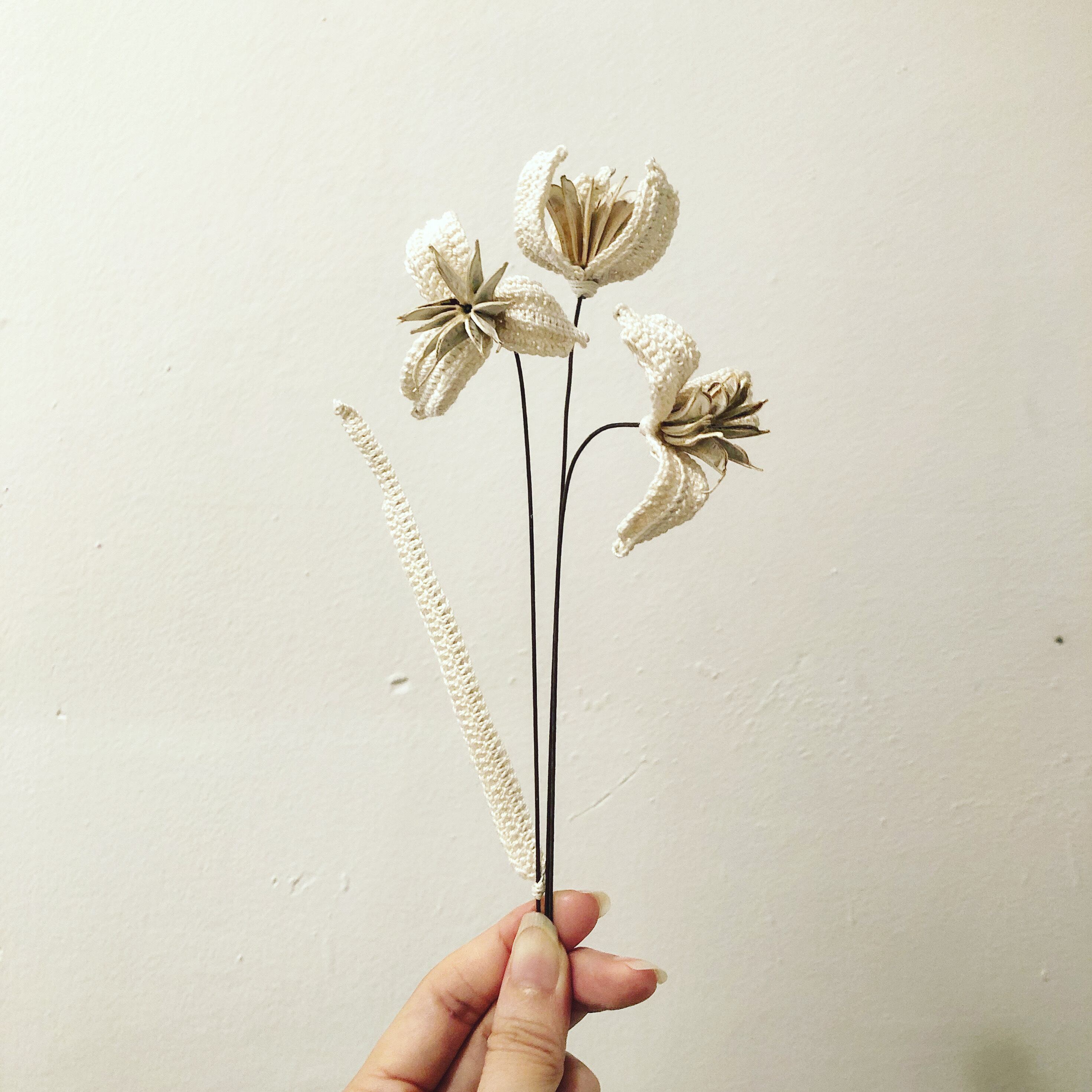 手編みとドライフラワーの観用植物。ナチュラルカラー。