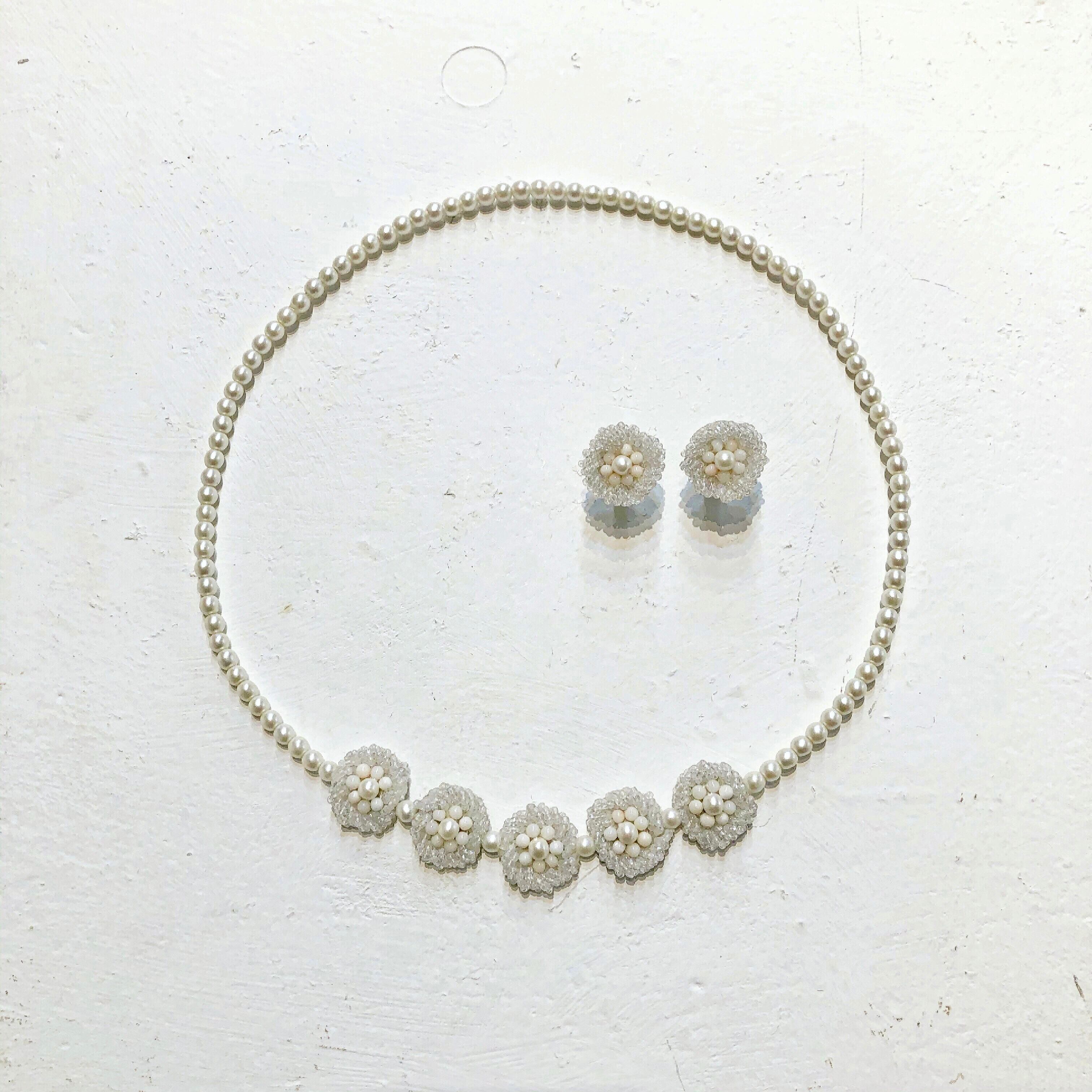 オフホワイト(写真3枚目左):アンティークパール・珊瑚・粒ガラスビーズ