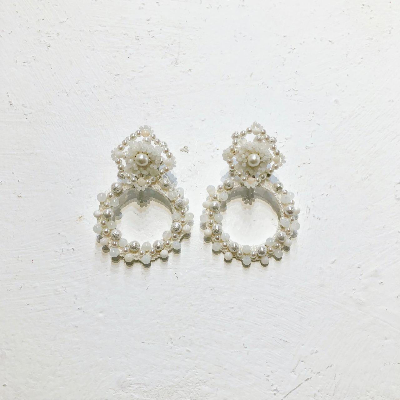 パールと手編みでオフホワイトカラー基調に仕上げました。
