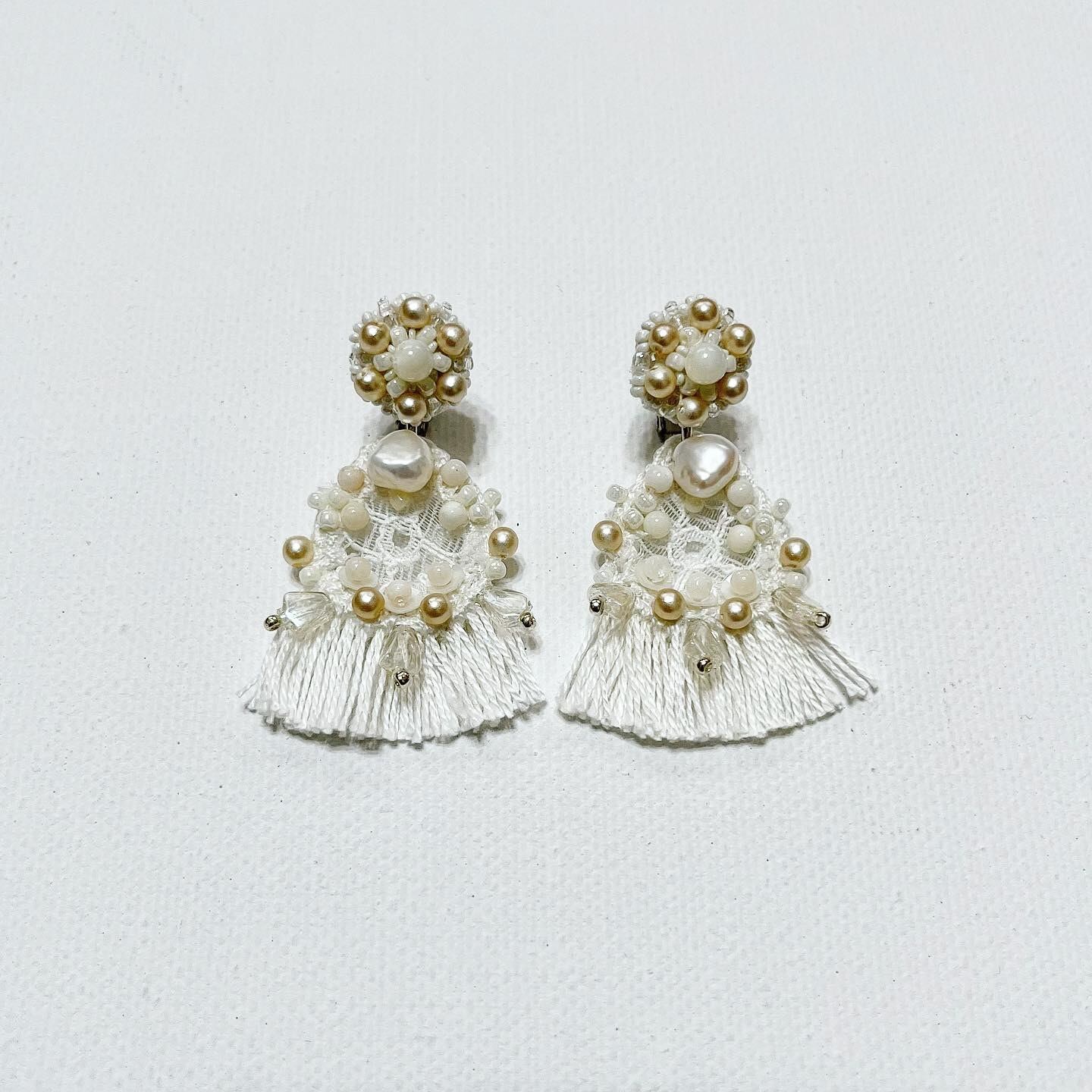 ・ビーズとレースのフリンジピアス