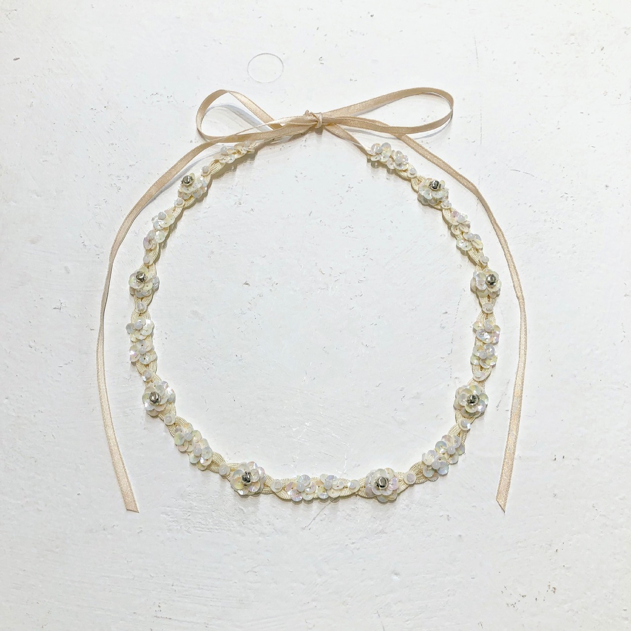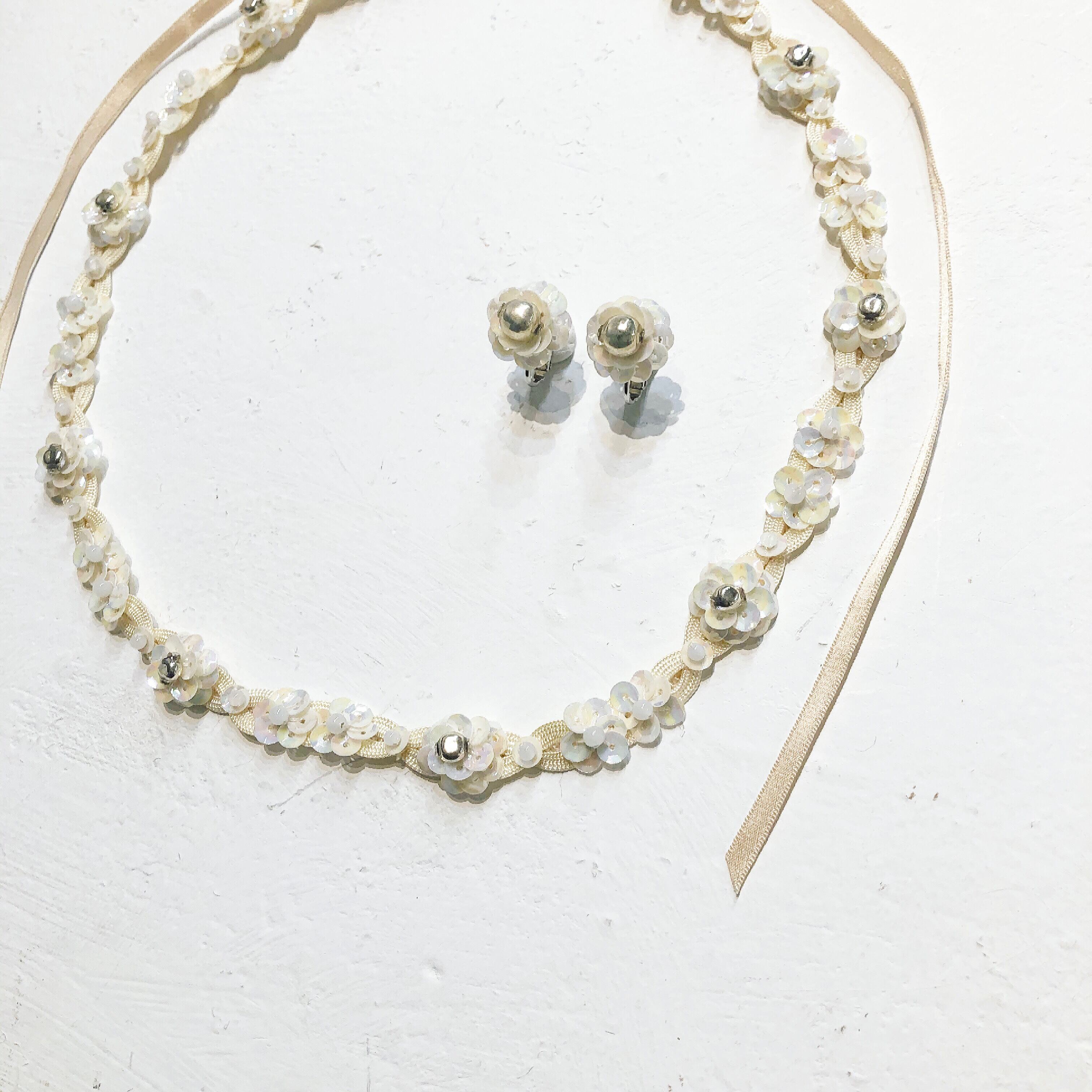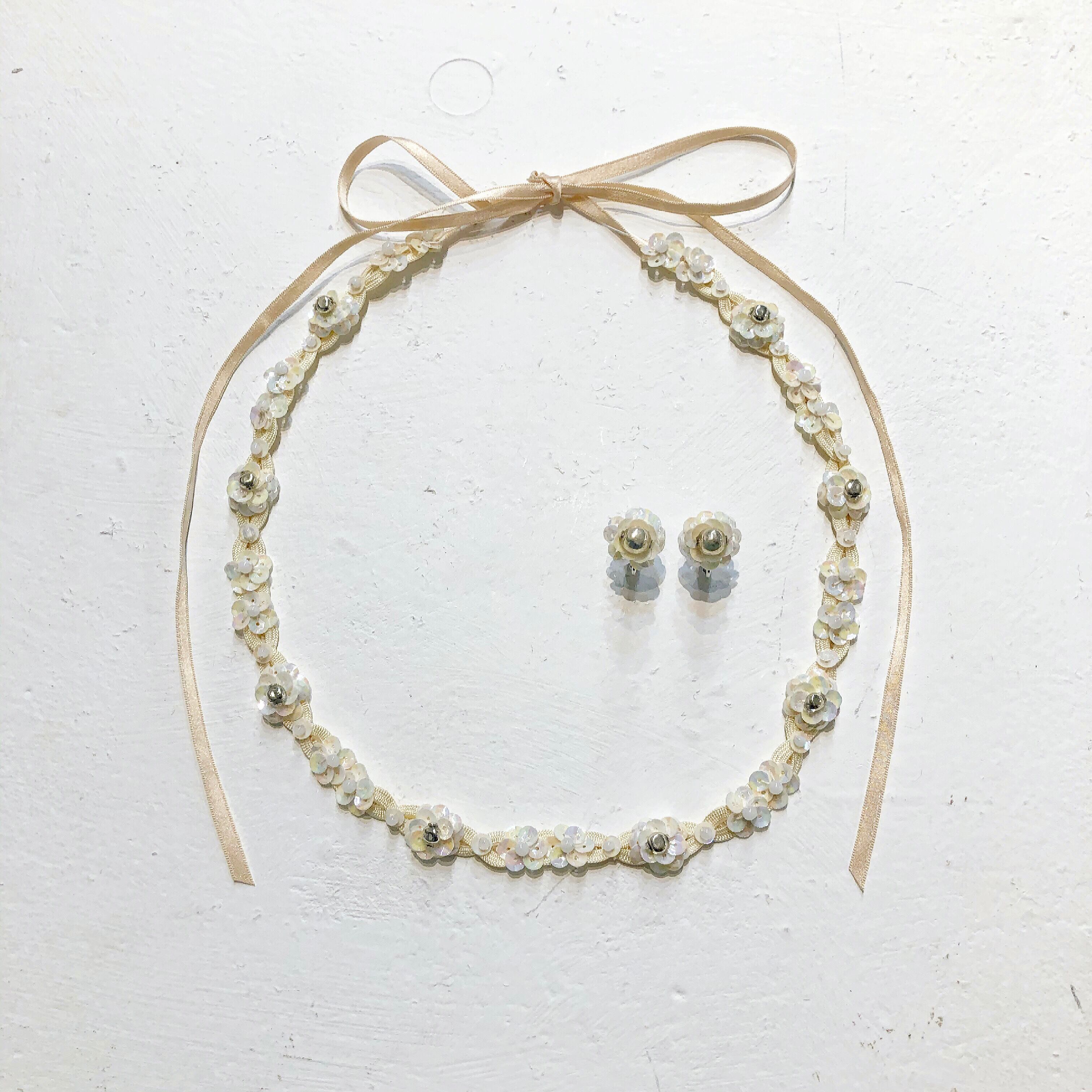アンティークビーズヘッドリボン+アンティークスパンコールと小花のイヤードレスのセット。